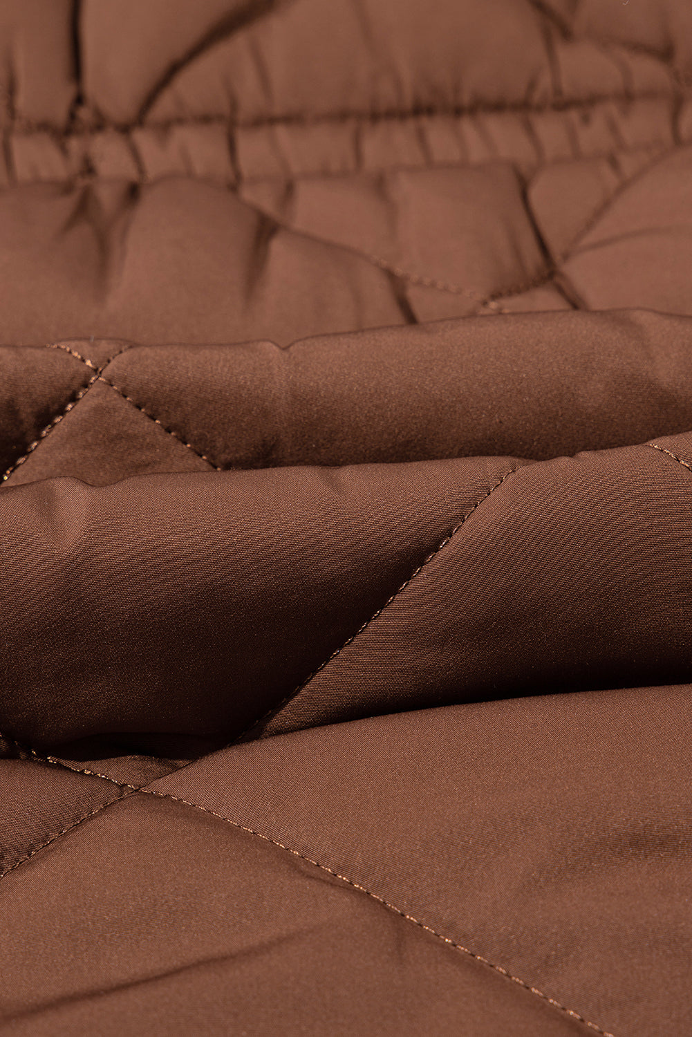 Coffee Puffer Quilted Stand Collar Pocketed Vest Coat